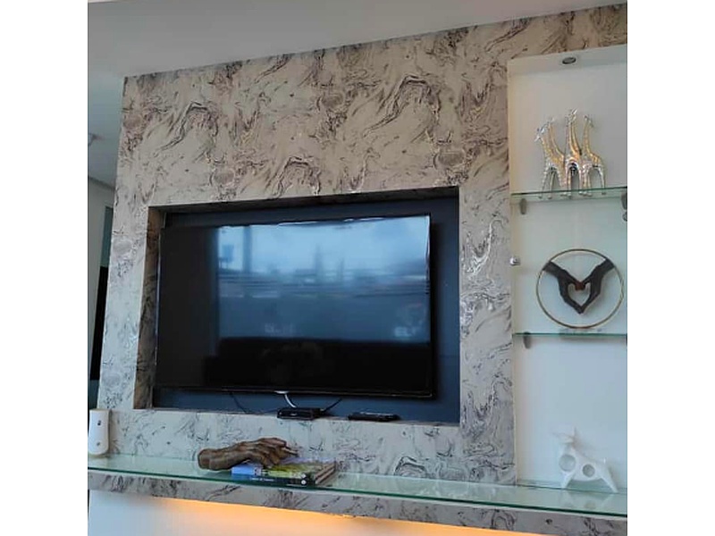Papel tapiz con elegante textura estilo mármol para recubrimiento de paredes de sala o comedor.