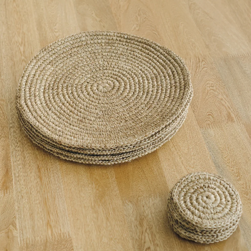 Individuales tejido artesanalmente 100% en fibra natural fique (Incluye portavasos)