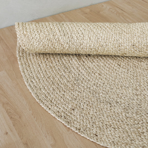 Tapete decorativo tejido artesanalmente 100% en fibra natural fique. Técnica: trenza