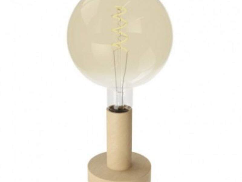 Posaluce Wood M, lámpara de mesa de madera con cable textil, interruptor y clavija