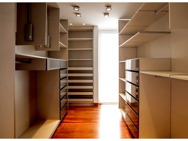 Ofrece amplios compartimentos, cajones y barras para colgar, proporcionando una solución completa para mantener todo en orden.