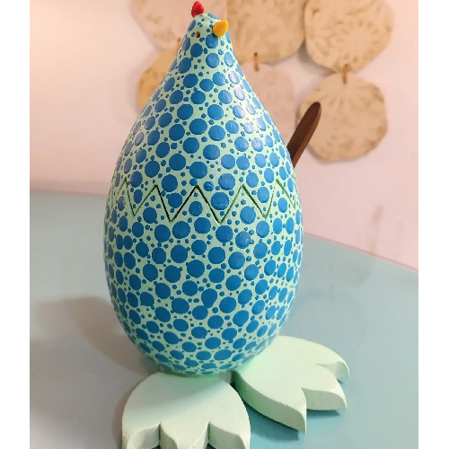 Gallina azucarera pintada a mano, tapa y cuenco de cerámica