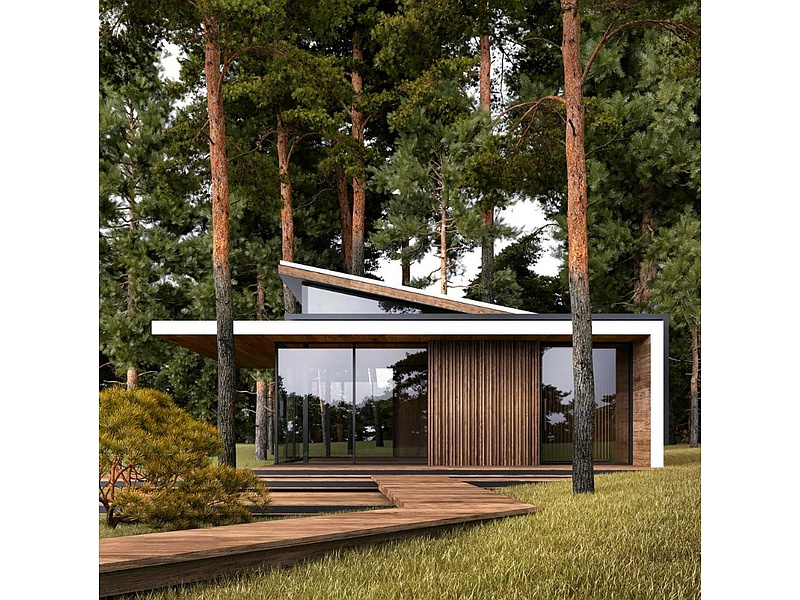 Construcción cabaña en el bosque, bien integrada a su entorno.
