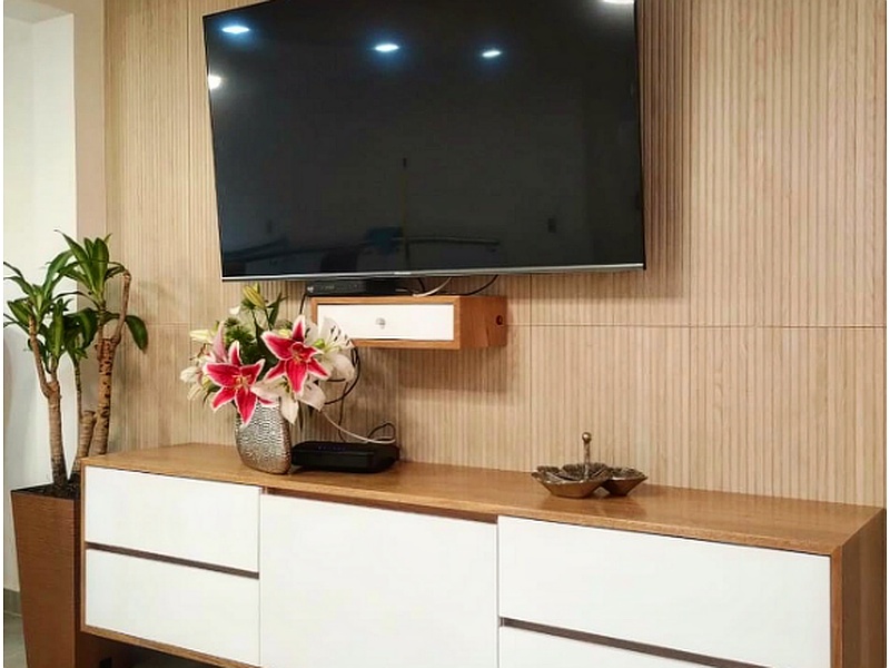 El mueble para TV "Estilo y Organización" es una pieza esencial para cualquier sala de estar moderna. Con un diseño contemporáneo y una estructura de madera maciza con acabado en nogal, este mueble ofrece amplios compartimentos y estantes ajustables.