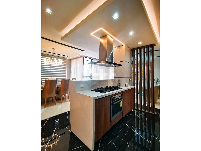 El diseño de cocina en galería, ofrecido como servicio, es perfecto para espacios pequeños, optimizando el área de trabajo con una disposición estrecha y alargada. Este diseño permite un flujo de trabajo eficiente, con todos los elementos al alcance, sin sacrificar funcionalidad.