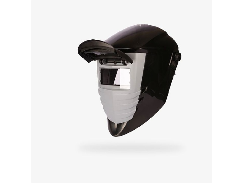 Máscara para soldadura fabricada en resina termoplástica provista de arnés para sujeción a la cabeza con ajuste en altura, perímetro y ángulo. Equipada con ventana portafiltro rebatible para alojar cubrefiltro, filtro y antecristal de 51 x105 mm nominal.