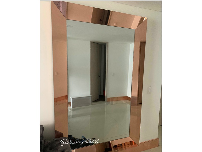 Espejo con marco de oro rosa.