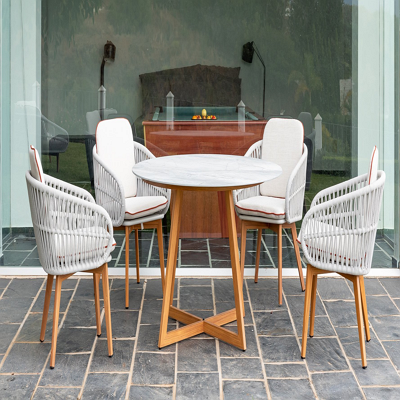 Mesa redonda con superficie de cerámico mármol, que aporta un toque de lujo y sofisticación a cualquier espacio. Su elegante acabado imita el mármol real, ofreciendo durabilidad y estilo sin el peso y el mantenimiento del mármol auténtico.