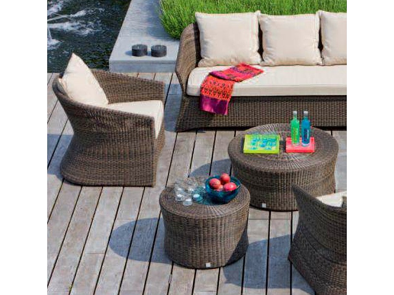 La sala Poise es ideal para exteriores, ofreciendo un diseño elegante y funcional. Los sillones están fabricados en mimbre, un material duradero y resistente a las condiciones climáticas exteriores, que aporta un toque natural y sofisticado. Esta sala está diseñada para proporcionar comodidad y estilo en patios, terrazas o jardines, con cojines suaves y de alta calidad que añaden un nivel adicional de confort.