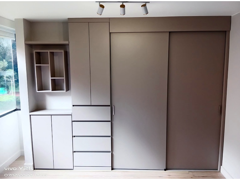 Armario con cajones y puertas corredizas.