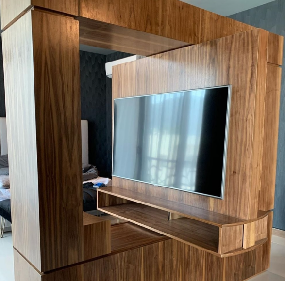Este mueble incluye un panel trasero que no solo sostiene tu televisor, sino que también oculta cables y dispositivos, manteniendo un aspecto ordenado. Su estilo minimalista se adapta a cualquier decoración, brindando un toque sofisticado.