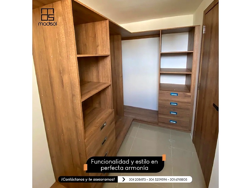 El armario vestidor de melamina de Madisol SAS es la solución definitiva para una organización elegante y eficiente en tu dormitorio. Con un diseño modular y versátil, ofrece amplios espacios para colgar ropa, estantes ajustables y compartimentos adicionales para accesorios. Fabricado en melamina de alta calidad, proporciona durabilidad y resistencia al desgaste, además de ser fácil de mantener. Su acabado moderno y elegante se adapta a cualquier estilo de decoración, creando un ambiente ordenado y sofisticado. Ideal para quienes buscan optimizar el espacio y mantener su vestidor funcional y estilizado.