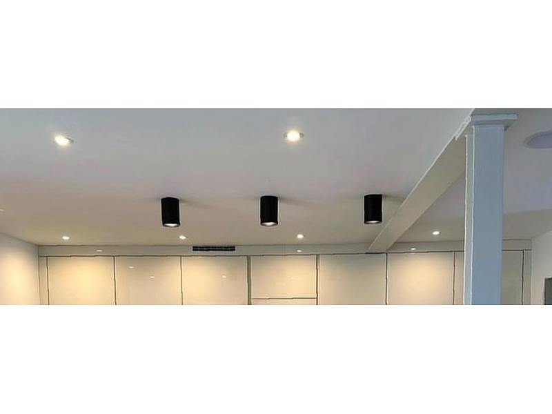 Iluminación estratégica: Usa iluminación LED debajo de los gabinetes y lámparas colgantes minimalistas para crear un ambiente acogedor y moderno.