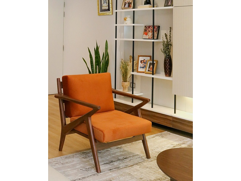 Silla de madera color naranja tapizada