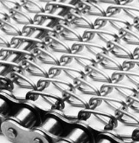 Esta opción consiste en la instalación de cadena a los extremos de la banda, unida a esta por medio de varillas conectoras atreves de los espirales del tejido e insertadas en los pernos de la cadena. Permite dar tracción positiva para casos de transportadores de carga pesada y la sincronización entre varias bandas.