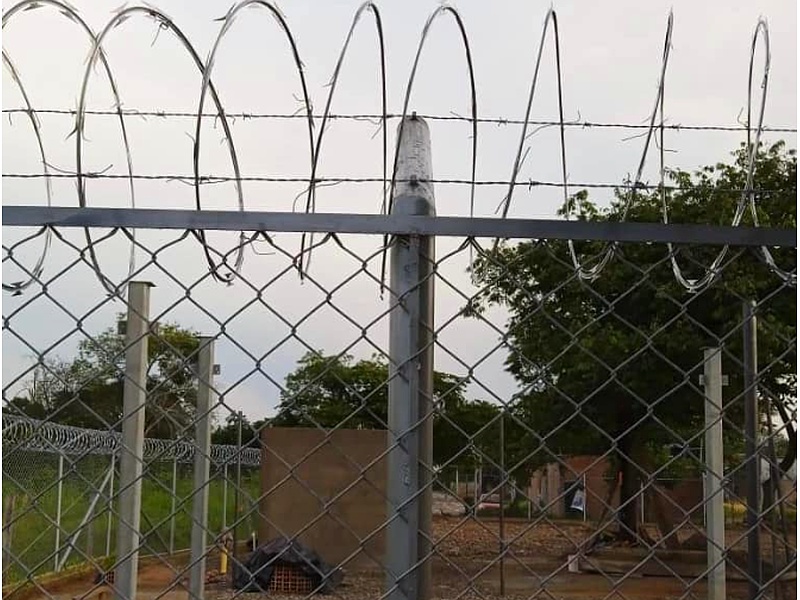 Cerca de seguridad formada por una serie de bobinas de alambre de acero con cuchillas afiladas enrolladas en espiral. Su diseño crea una barrera física con bordes cortantes que disuade y previene el acceso no autorizado. Es efectiva para protección robusta y visualmente intimidante.