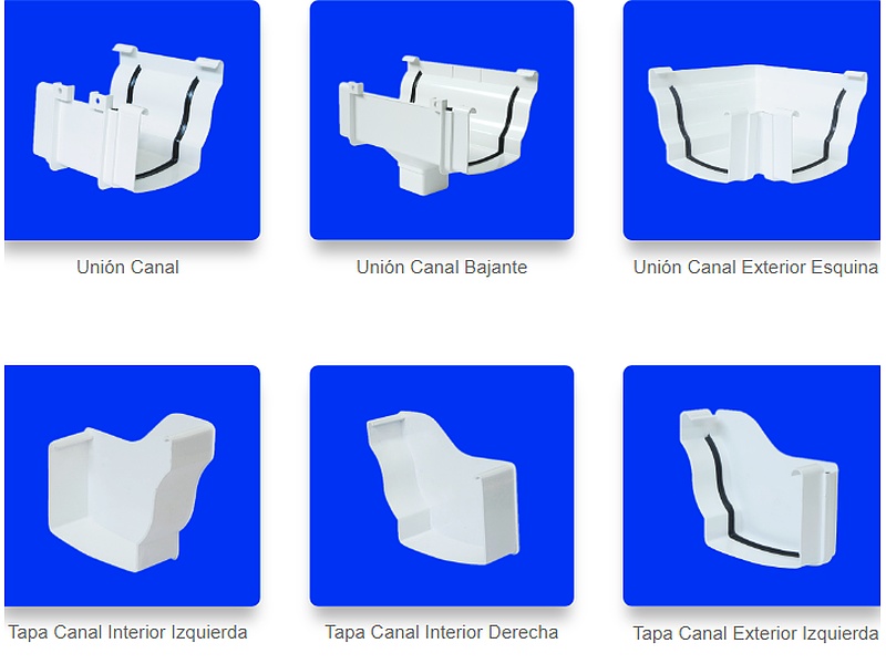 Ofrecemos: Canaleta Bajante, Canal, Unión Canal, Unión Canal Bajante, Unión Canal Exterior Esquina, Tapa Canal Interior Izquierda, Tapa Canal Interior Derecha, Tapa Canal Exterior Izquierda, Tapa Canal Exterior Derecha, Hidrosello Canal, Soporte Canal, Unión Canaleta, Unión Canaleta Bajante, Unión Canaleta Exterior Interior Esquina, Tapa Canaleta Interior, Tapa Canaleta Exterior, Soporte Canaleta, Unión Bajante, Codo Bajante 45 Grados, Codo Bajante 90 Grados, Soporte Bajante, Adaptador Bajante Aguas LLuvias, Hidrosello Canaleta.
