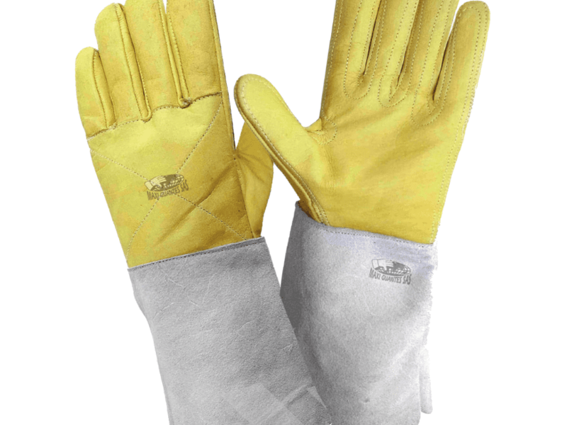 Brinda perfecta protección a sus manos, con refuerzo externo en palma y cinco dedos en vaqueta, manga en carnaza, especial para recolección de rosas