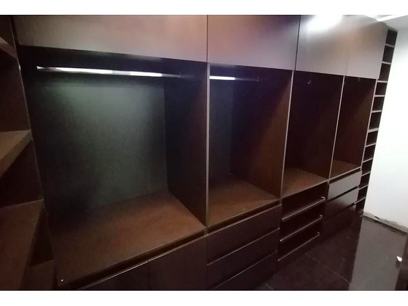 Walk-In Closet en Melamina Color Caoba es una solución de almacenamiento sofisticada y funcional para tu espacio. Fabricado en melamina de alta calidad, ofrece un acabado en color caoba que añade un toque cálido y elegante.