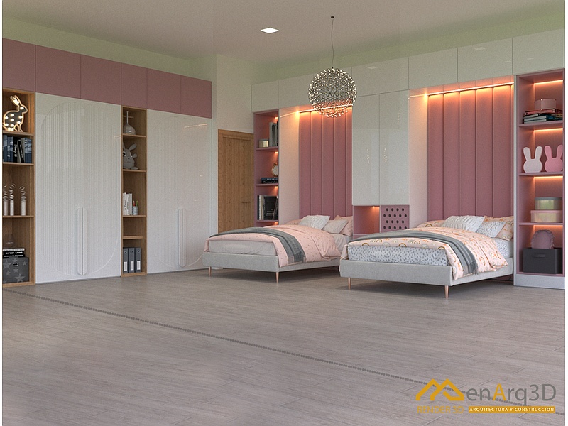 Diseñada para optimizar el espacio compartido con dos camas individuales o una cama matrimonial. La disposición busca ofrecer comodidad y funcionalidad para dos ocupantes.