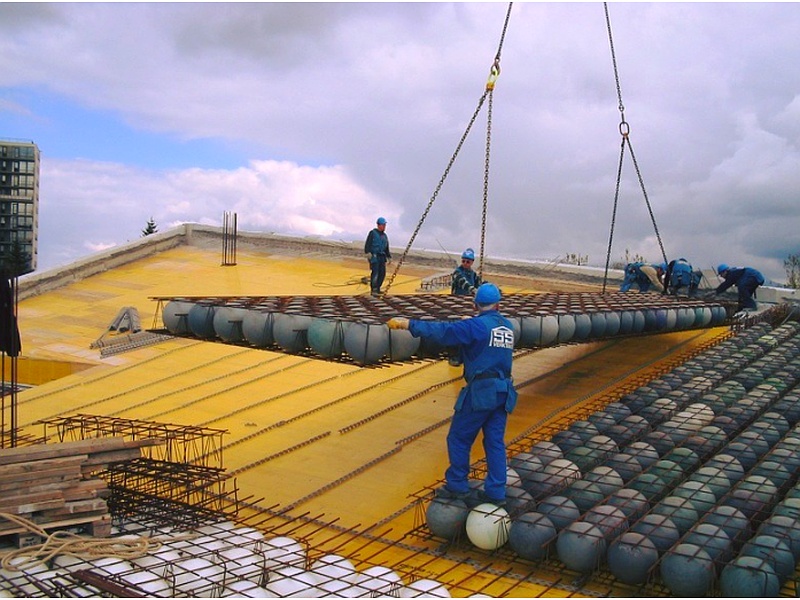Las losas con burbujas, también conocidas como losas aligeradas o con casetones, son un sistema constructivo innovador que utiliza esferas o "burbujas" de plástico en el interior del concreto, con el fin de reducir el peso de la estructura sin comprometer su resistencia.