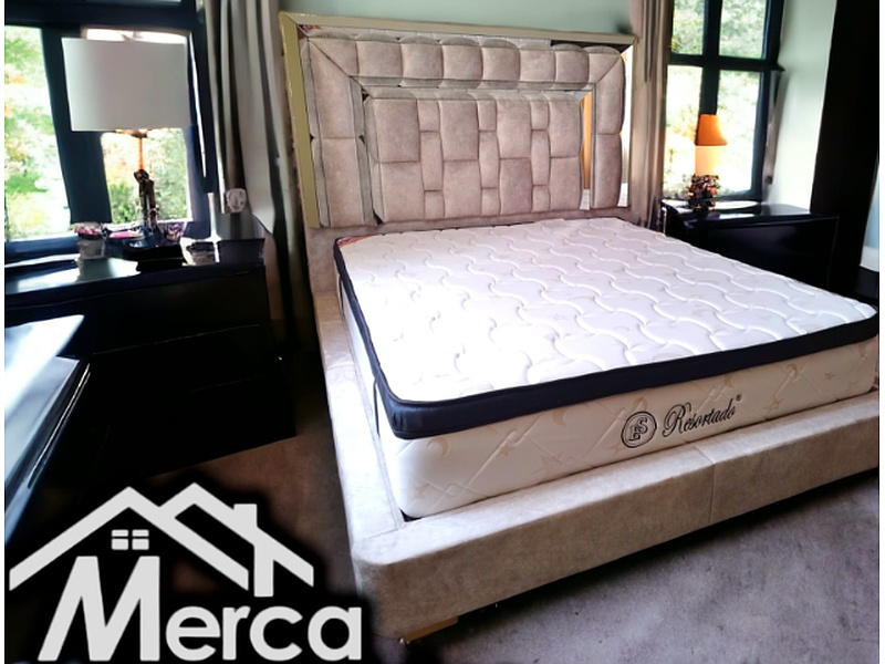 Nuestra cama moderna combina comodidad y estilo en una pieza única. El cabecero, de diseño minimalista, está tapizado en cuero sintético de alta calidad, disponible en varios colores. La base de la cama es robusta, construida en madera maciza, garantizando durabilidad y estabilidad.