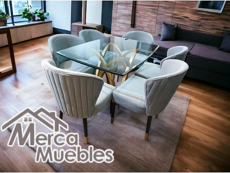 Un comedor versátil y funcional que acomoda a seis personas cómodamente. La mesa, de diseño robusto, está hecha de madera sólida con un acabado en barniz que resalta su belleza natural. Las sillas, ergonómicamente diseñadas, proporcionan un confort excepcional durante largas comidas, haciendo de este comedor una elección perfecta para cualquier hogar.