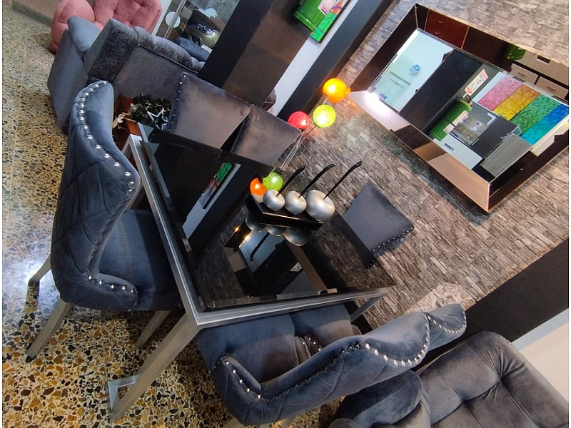 Este comedor es el epítome del estilo contemporáneo. La mesa, de líneas rectas y elegantes, está fabricada en madera de alta calidad con un acabado en tono negro mate, que le otorga un aire de modernidad y distinción.