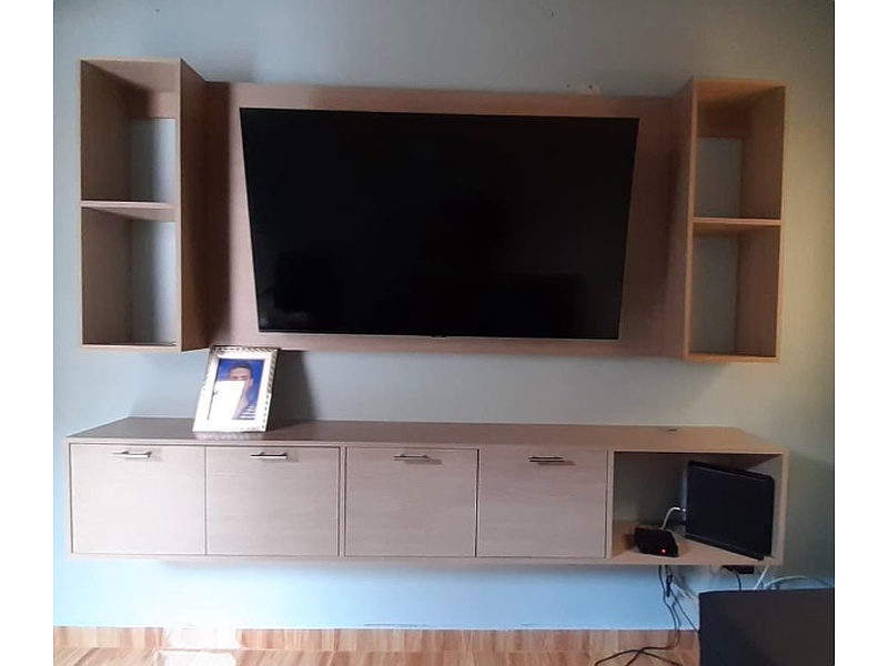 Disponible en varios colores y acabados, este centro de entretenimiento se adapta a cualquier estilo de decoración contemporáneo.
