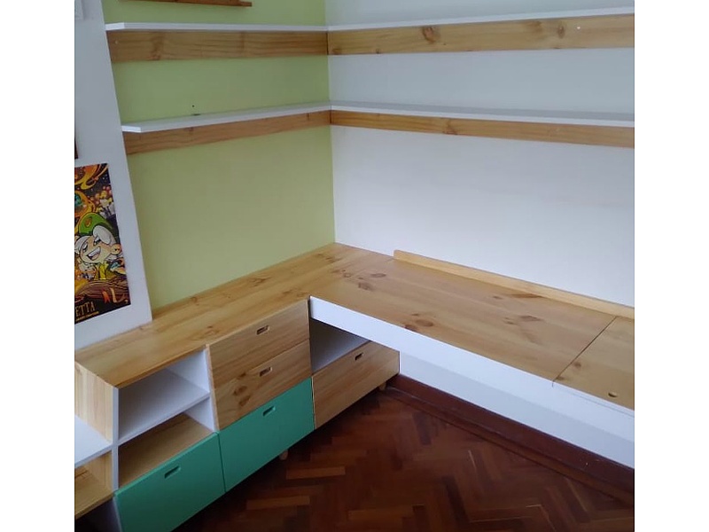 Optimiza tu espacio de almacenamiento con este escritorio con estantería integrada, ideal para mantener tus libros y suministros organizados.