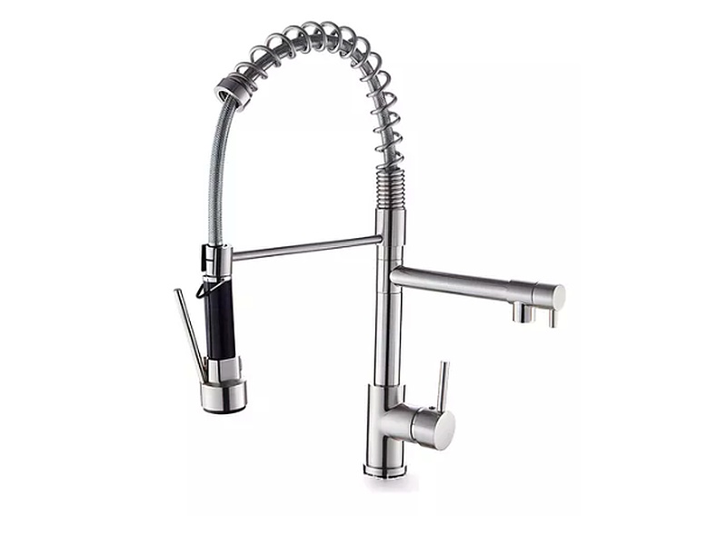 Llave Grifería Lavaplatos Doble Cuello Cisne Flexible. Grifo para cocina giratorio de resorte 360 grado con dos modos de agua, fría y agua caliente. Fabricado en un material de alta calidad de latón macizo sin plomo con acabado resistente a la corrosión y al óxido, cartucho de disco de cerámica reducirá el punto de fuga y prometerá un uso a largo plazo.