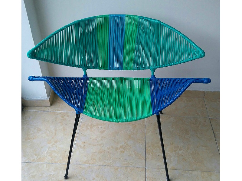 Silla tejida en mimbre plástico