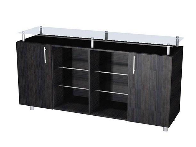 Cómoda color negro con tapa de vidrio.