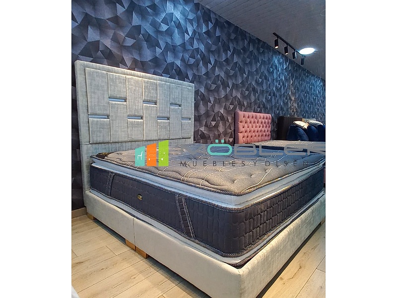 Cama moderna gris de diseño minimalista y sofisticado. Su tono neutro y estructura sólida la hacen perfecta para crear un ambiente elegante y relajante en el dormitorio.