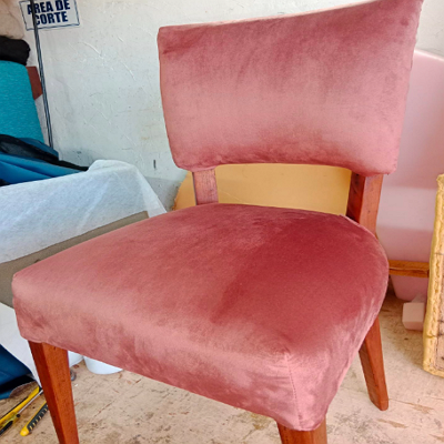 Silla de madera afelpada, con una estructura robusta y un tapizado suave que proporciona comodidad y estilo. Su acabado en madera combina con el acolchado afelpado para un diseño elegante y acogedor, ideal para comedores o áreas de estar.