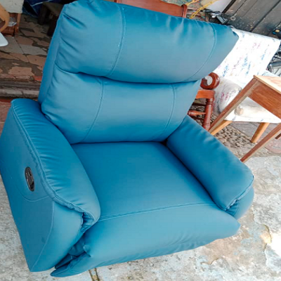 Silla reclinable azul en pielina, con un diseño elegante y moderno que permite ajustar el respaldo para una comodidad personalizada. Su tapizado en pielina azul es fácil de limpiar y aporta un toque sofisticado a cualquier espacio.