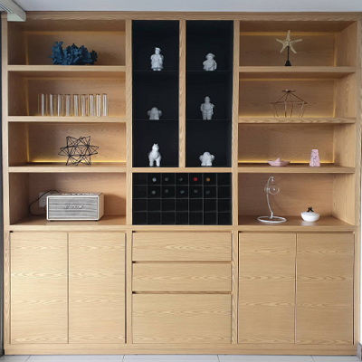Un mueble bar con cava combina almacenamiento para bebidas con un compartimento especializado para conservar vinos a la temperatura ideal. Ofrece elegancia y funcionalidad, permitiendo una presentación sofisticada y un acceso práctico a bebidas y vinos en el hogar.