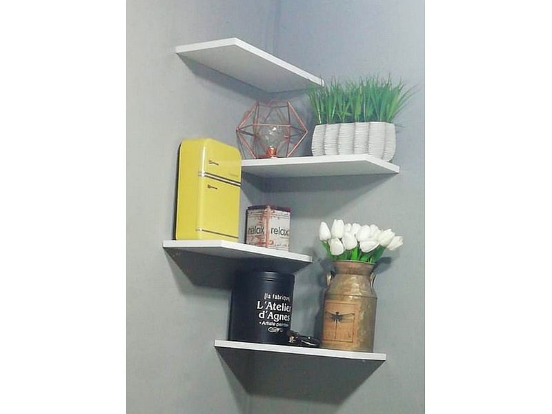 El esquinero con repisas flotantes es una solución de almacenamiento y decoración que maximiza el uso del espacio en las esquinas de cualquier habitación. Su diseño incluye repisas flotantes que se montan en la pared, creando un efecto visual limpio y moderno.
