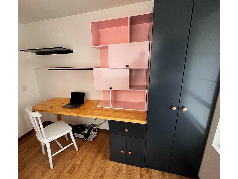 Escritorio para computador porteril con muebles lateral.