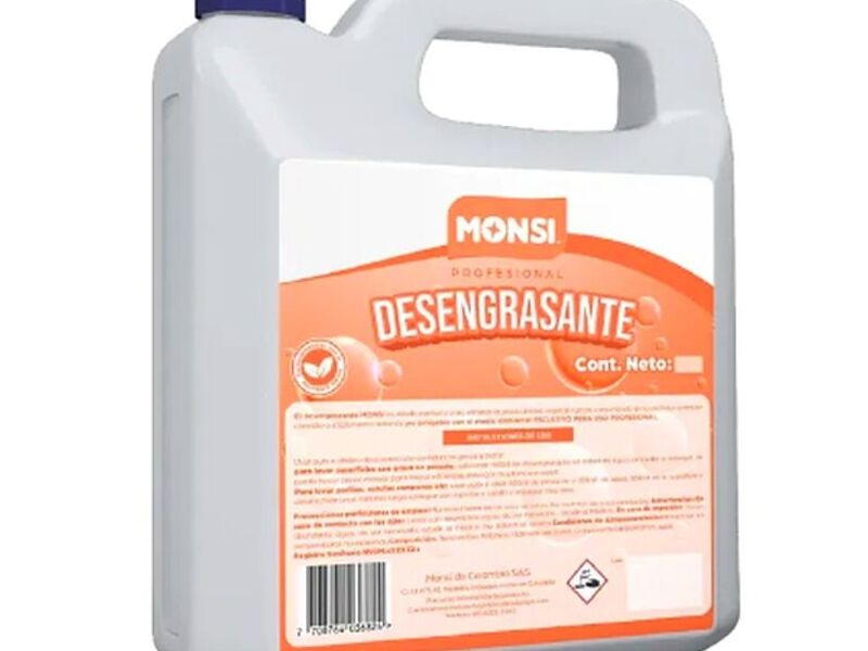 Condiciones de Uso: El Desengrasante concentrado – Monsi Profesional concentrado puede utilizarse puro o diluido, simplemente usar sobre la superficie a tratar y, dependiendo del grado de grasa, déjalo actuar durante unos minutos para que penetre en las capas más profundas. Luego, frota con un paño o una esponja y enjuaga con agua. Los resultados te sorprenderán al remueve fácilmente la suciedad y la grasa de tus parrillas y cocinas industriales.gracias a la linea Monsi Profesional.