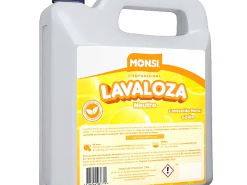 Condiciones de uso: Se puede utilizar el Lavaloza neutro – Monsi profesional de forma pura o diluida. Es necesario usarlo sobre la superficie a tratar, frotar y luego lavar con agua.