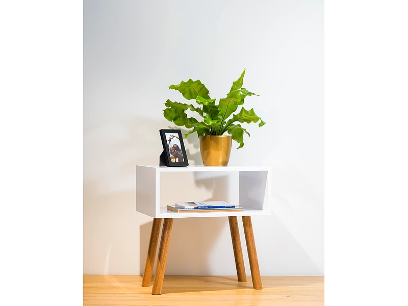 Mesita auxiliar color blanco con dos niveles. muebles perfectos para tus espacios.
