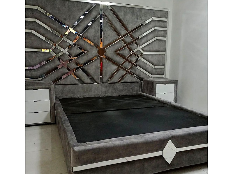 Alcoba cabecero espejo en color gris.