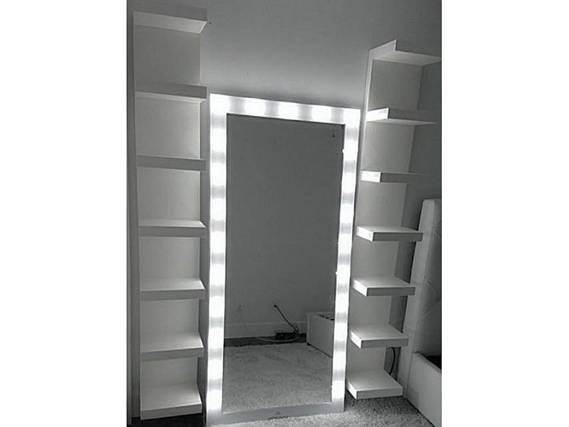 El espejo estantería con luces LED en melamina color blanco es una pieza moderna y práctica que combina funcionalidad y estilo. Este mueble cuenta con un espejo central rodeado de estanterías laterales, perfectas para organizar pequeños objetos decorativos o de uso diario.