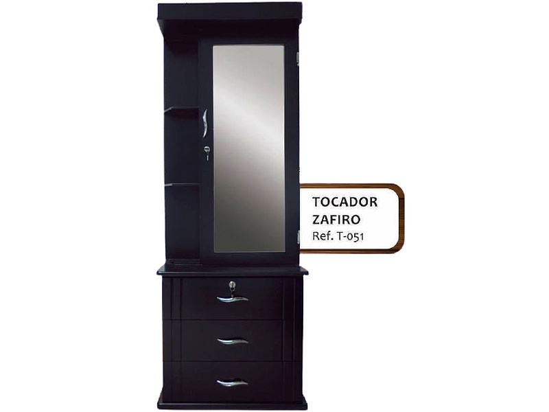 Elegancia y funcionalidad se combinan en el Tocador Zafiro. Este mueble, diseñado para aquellos que buscan un espacio personal refinado, cuenta con un amplio espejo rodeado de iluminación LED ajustable, perfectas para crear un ambiente ideal para arreglarse.