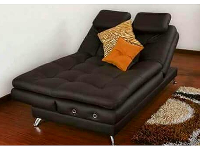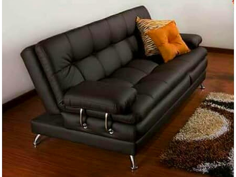 Sofá cama en sintético color moca, que combina comodidad y funcionalidad.