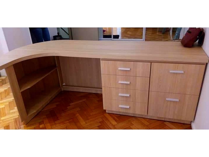 Escritorio esquinero en color roble.