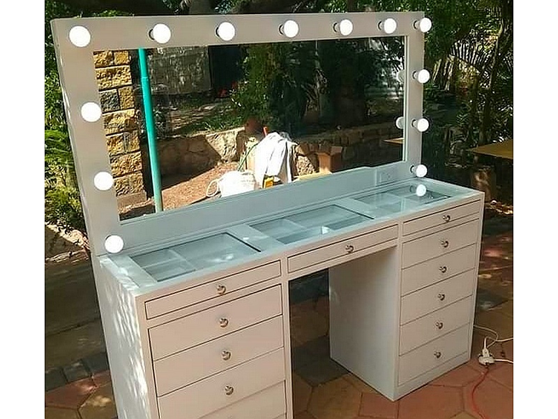 Peinador estilo hollywood 13 gavetas en color blanco.