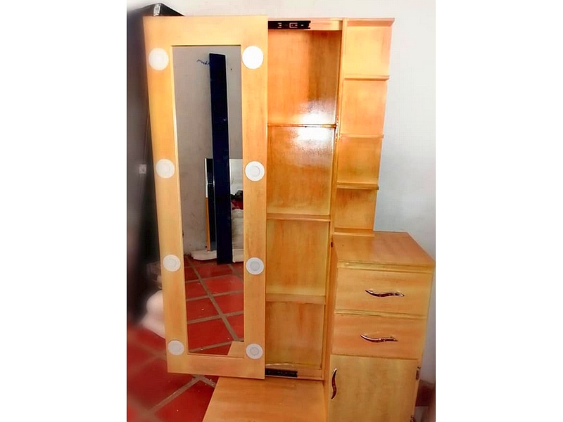 El peinador con luces LED en madera y 3 cajones combina funcionalidad y estilo moderno. Su estructura de madera ofrece durabilidad y un acabado elegante, mientras que las luces LED integradas proporcionan una iluminación brillante y adecuada.