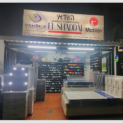 Mueblería y Variedades Shaddai, ubicada en Cúcuta, Colombia, es una empresa dedicada a ofrecer una amplia gama de muebles y artículos para el hogar. Con un compromiso con la calidad y la satisfacción del cliente, Shaddai proporciona desde sofás y camas hasta electrodomésticos y decoraciones, todo con un enfoque en la accesibilidad y el buen gusto. Su atención personalizada y su variado catálogo hacen de Mueblería y Variedades Shaddai una opción ideal para quienes buscan mejorar y embellecer sus espacios con productos de excelente calidad.